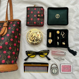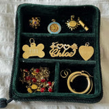 Designed to hold your most treasured pieces, this deep green velvet box features two small compartments, one long compartment, and a space to hold rings.