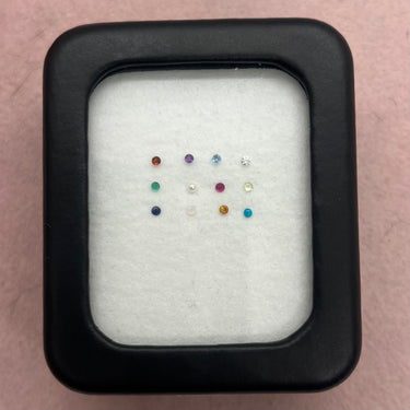 Choose between 3 shapes and all 12 birthstones. See below for the list of the available gemstones by month:
