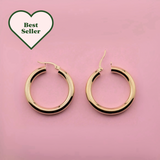 - NOTE: These hoops are made with a puffy technique so that they are lightweight and comfortable for all-day wear. The walls of the earrings are sturdy but please store them carefully to ensure they do not dent.