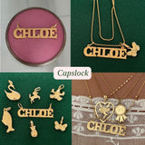 All nameplates will begin with a capital letter. At the moment, our jeweler is unable to offer spaces, symbols, additional capital letters, and accents. We only work with the English alphabet.