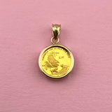 - NOTE: The gold coin can remain unset or can be set into its new 14k frame. Please email hello@yeahitsjewelry.com to coordinate.