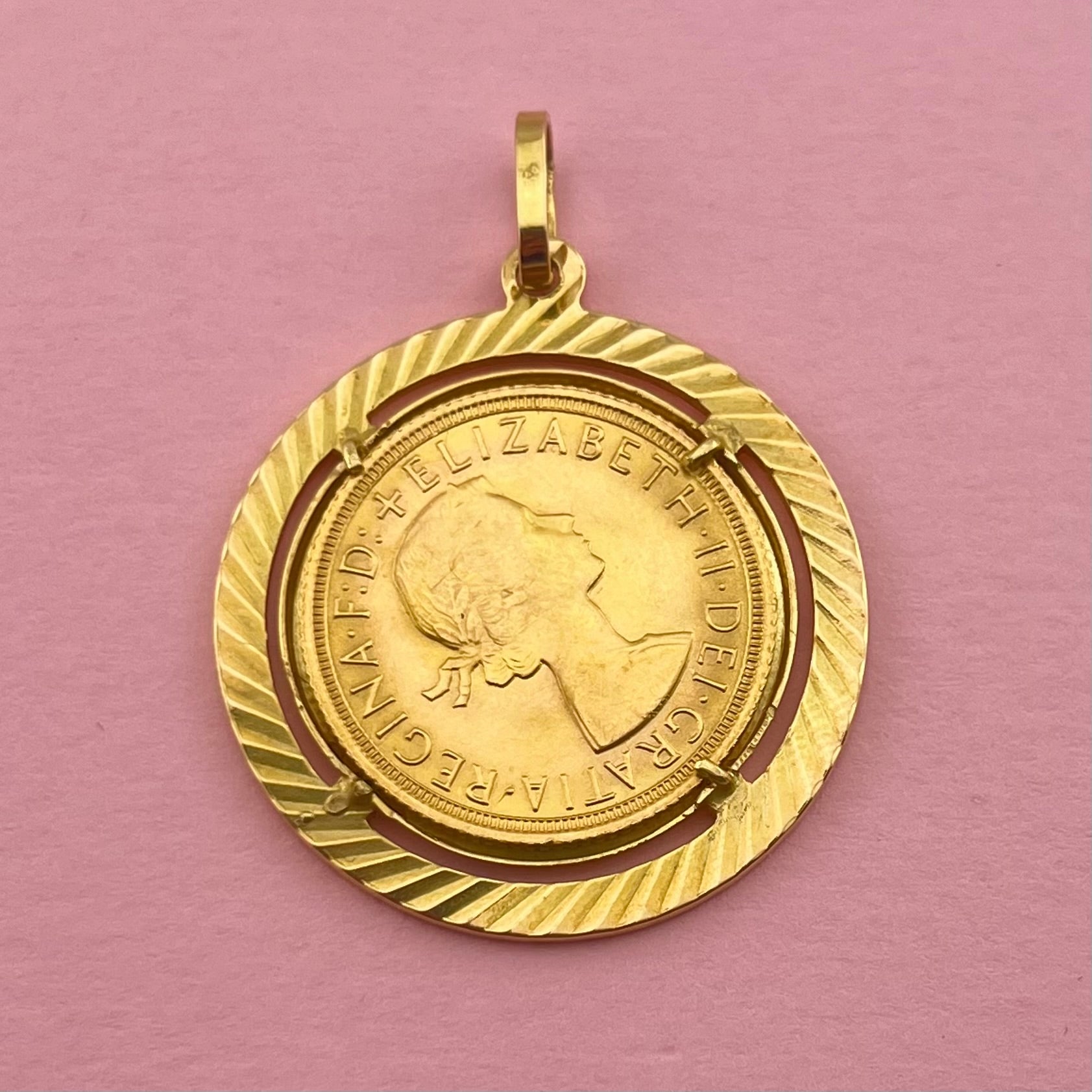 1968 Queen Elizabeth 22k Coin with Engine Turned Frame