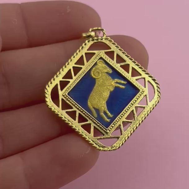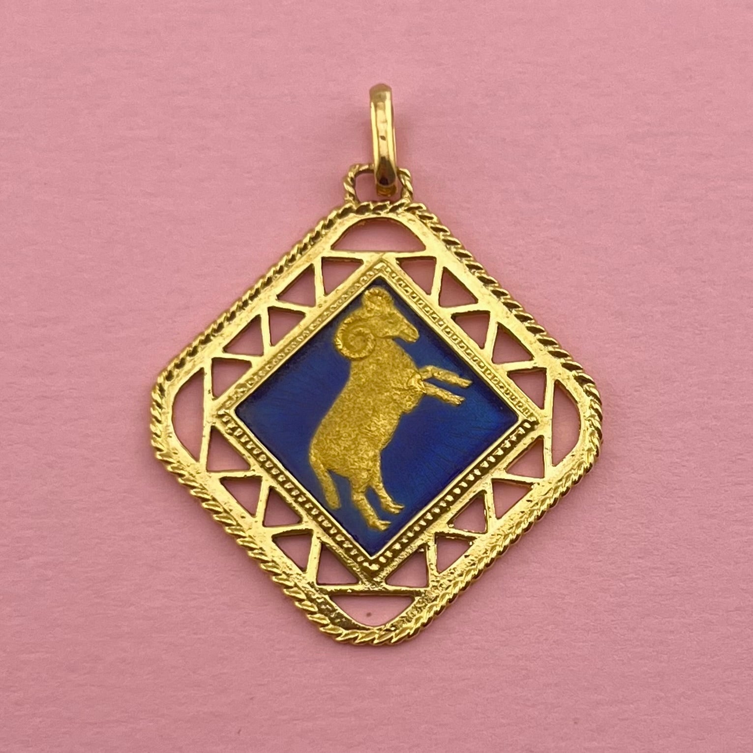 • The bright blue enamel and cut-out details really makes this pendant stand out.