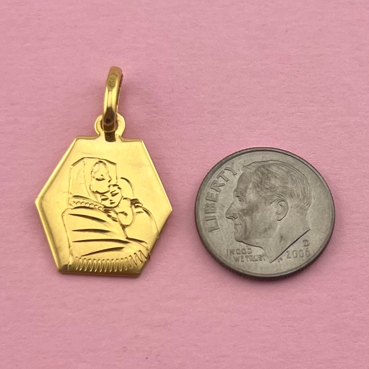 Hexagonal Mother Mary and Child Pendant