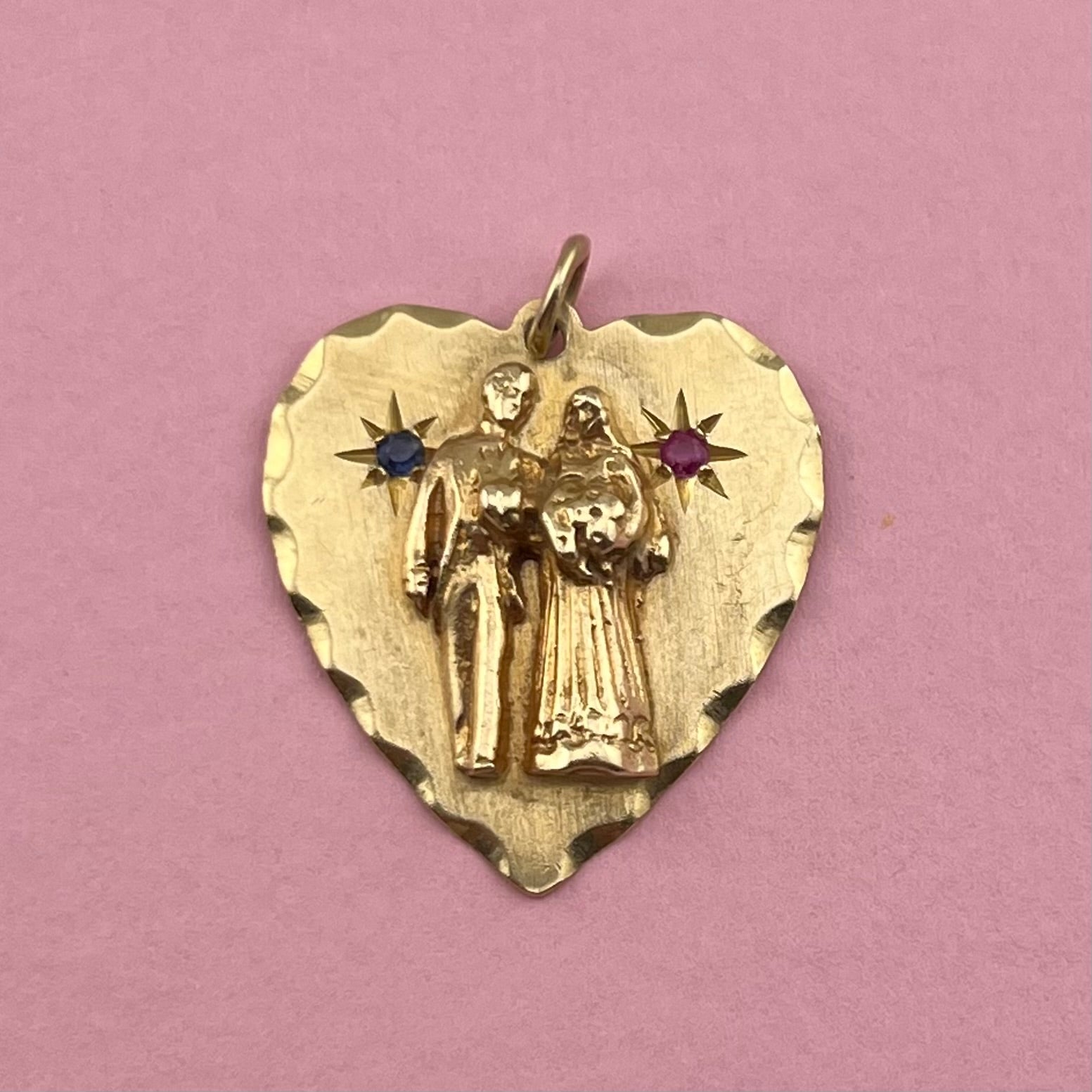 Bride and Groom Heart Engraved Pendant