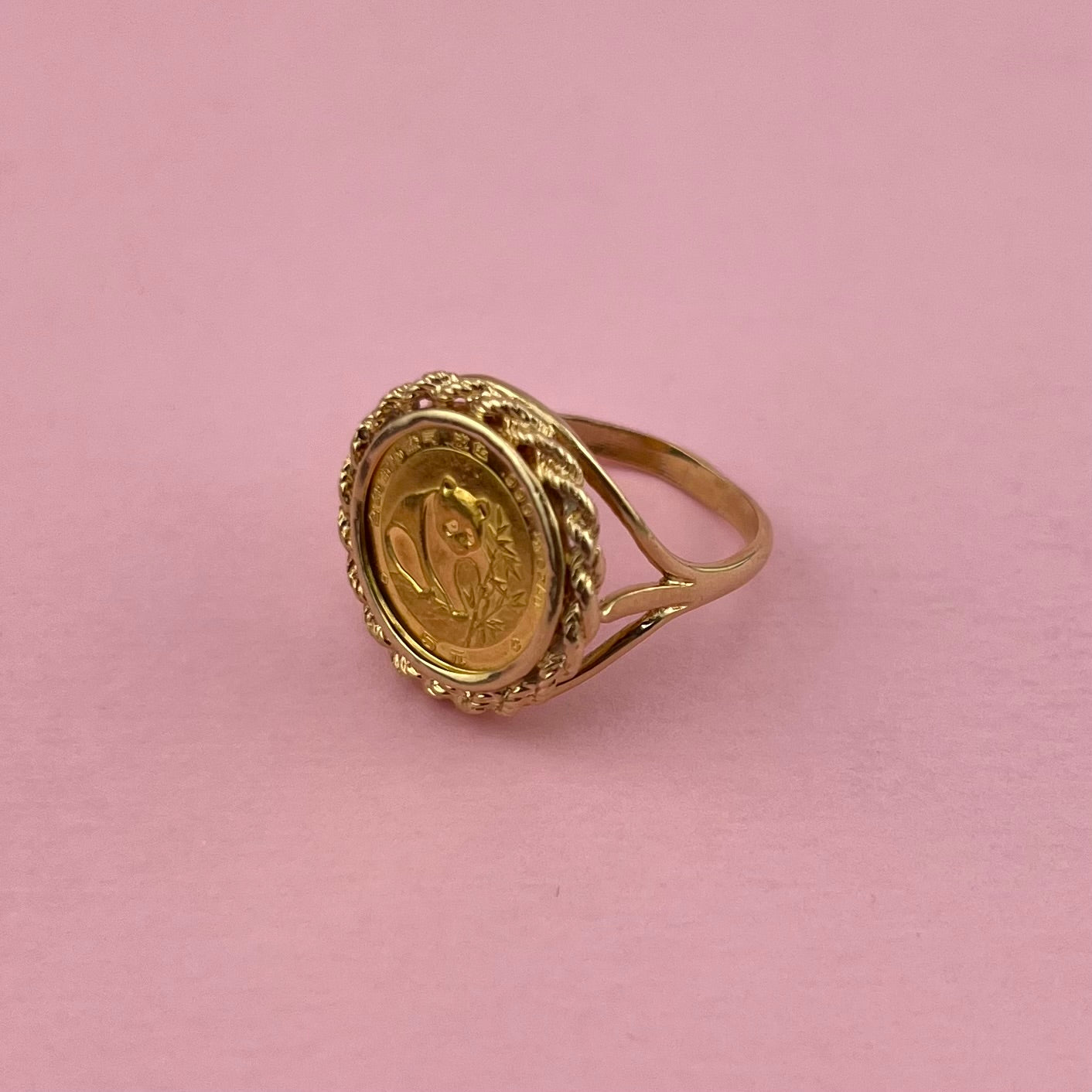 - Purity: 24k yellow gold with a 14k yellow gold frame
